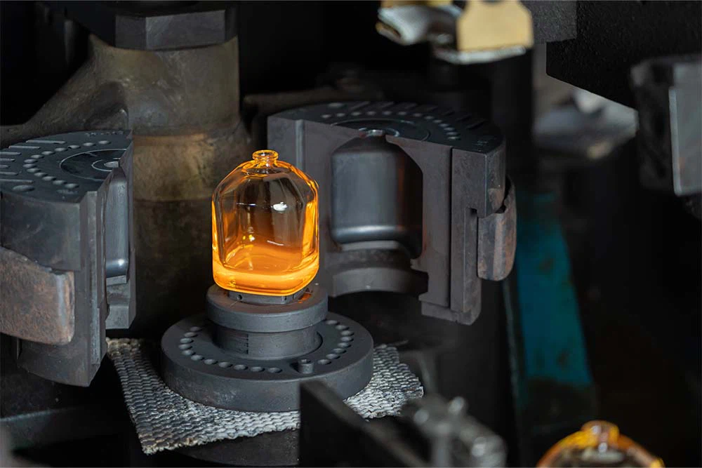 2. Apăsați și BOLK: Apăsarea sticlei topite în cavitățile de mucegai înainte de a arunca aerul pentru a-și modela marginile este de obicei procesul preferat, ceea ce face ca presa și lovitura să fie cea mai populară alegere în rândul producătorilor de sticlă.